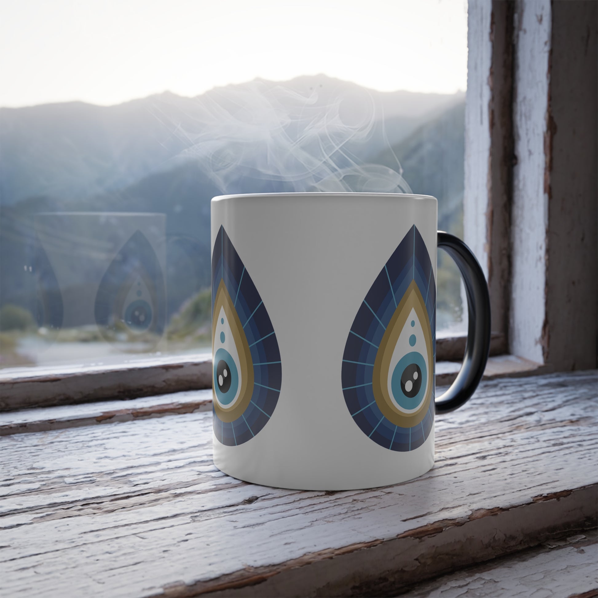 Color Changing Mug. Evil Eye Protection Coffee Cup. Good Luck Charm Mug, Heat Sensitive Cup, Unique Gift for Spiritual Friend.