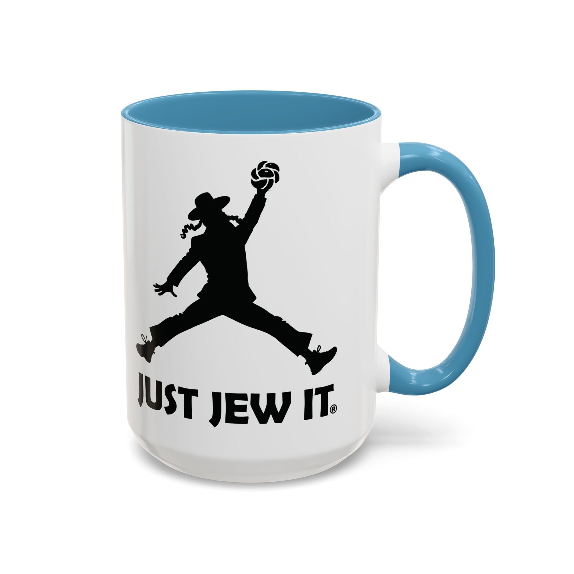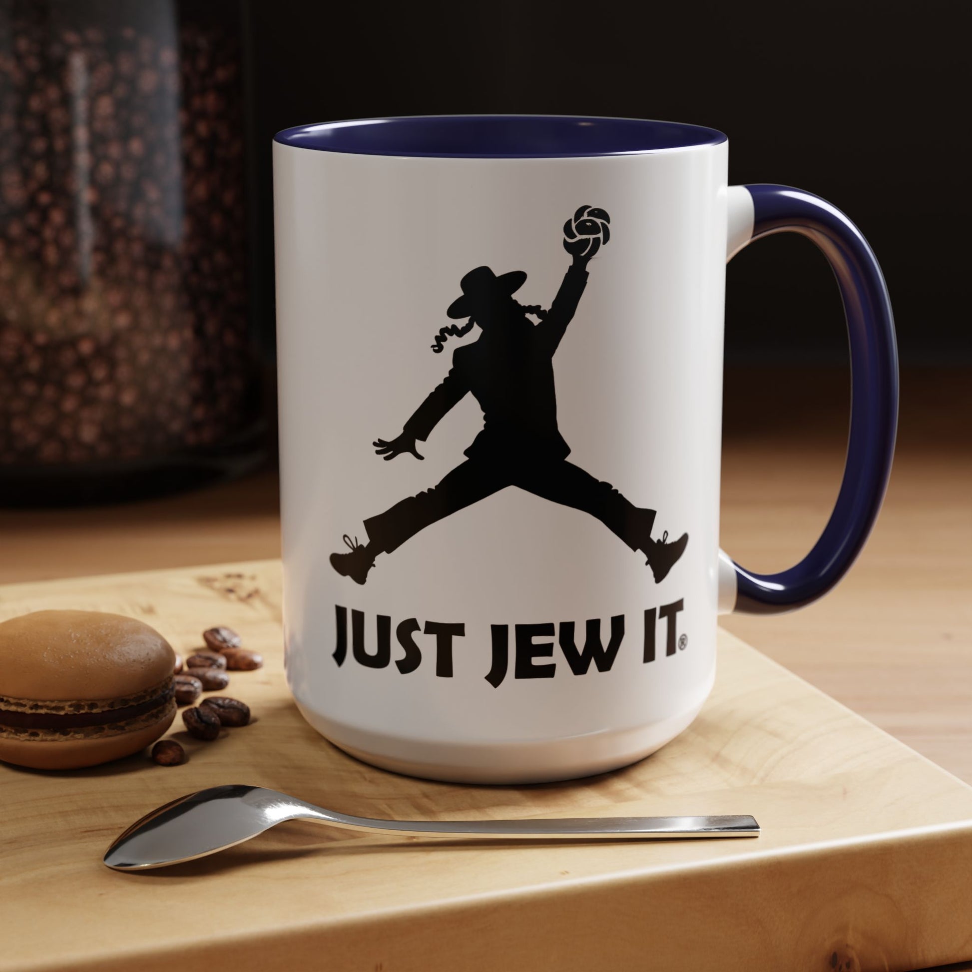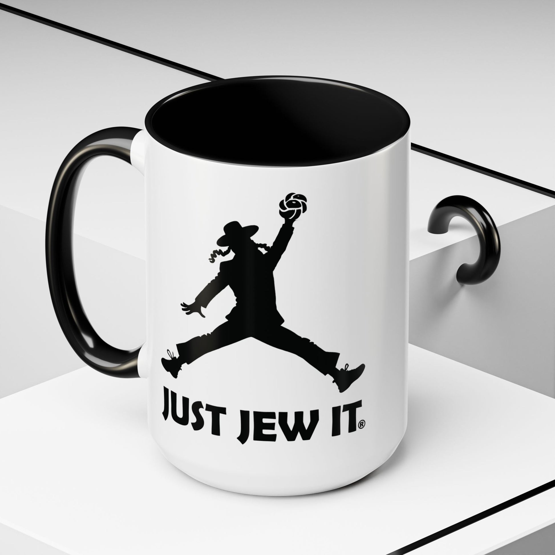 Just Jew It® Funny Rabbi Dunking Challa Bread Accent Mug, Jewish Humor Coffee Cup, Just Jew It Gift, 11, 15oz, Tea Mug, Ceramic Mug, Kitchen