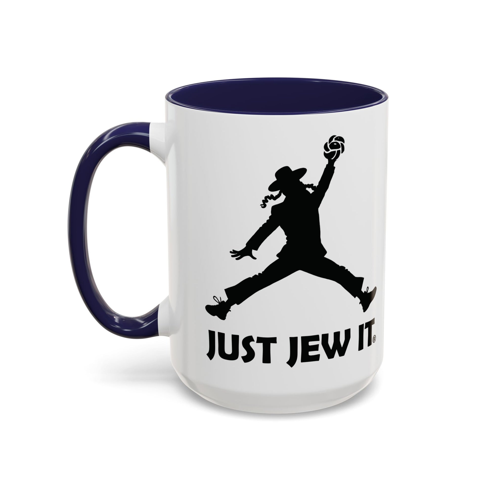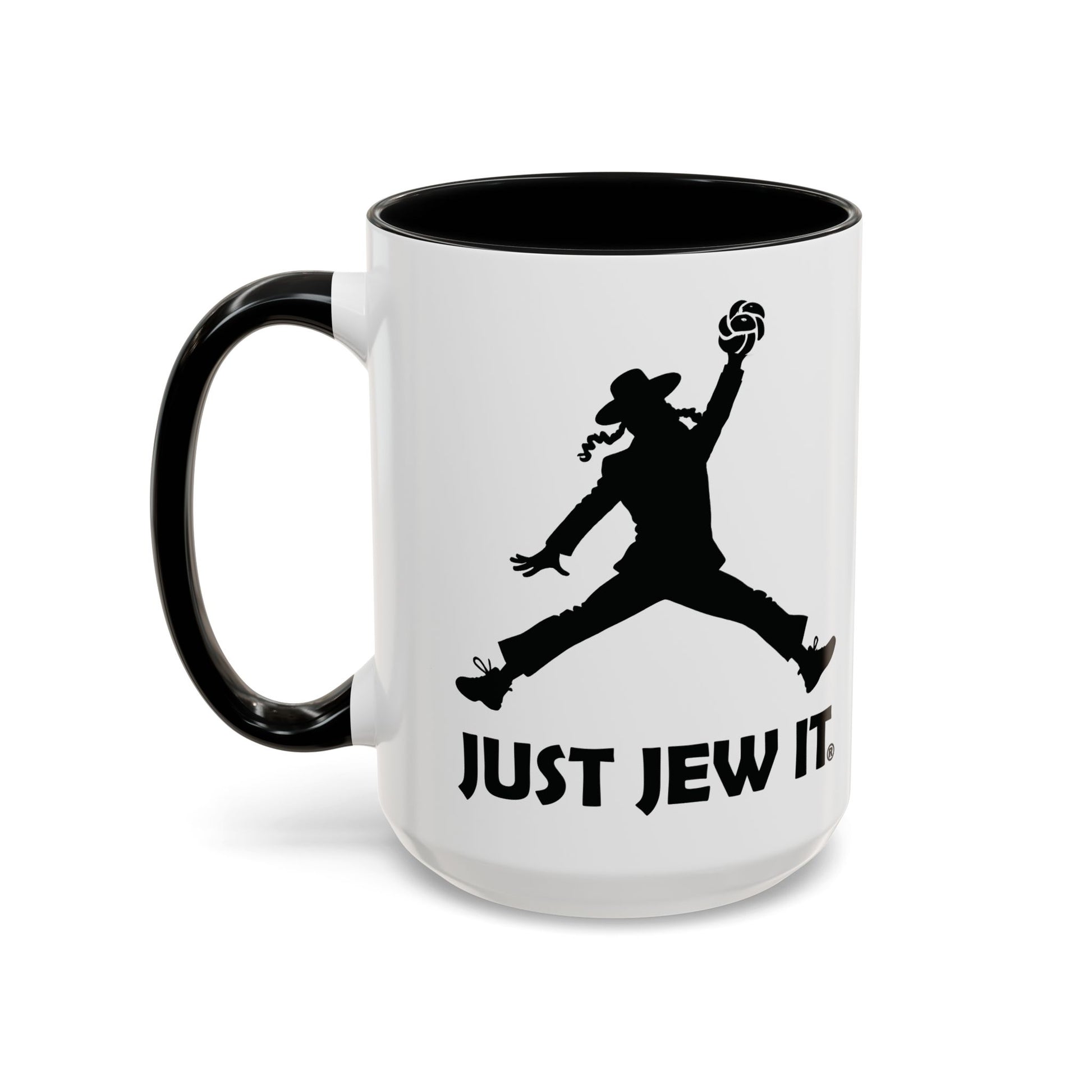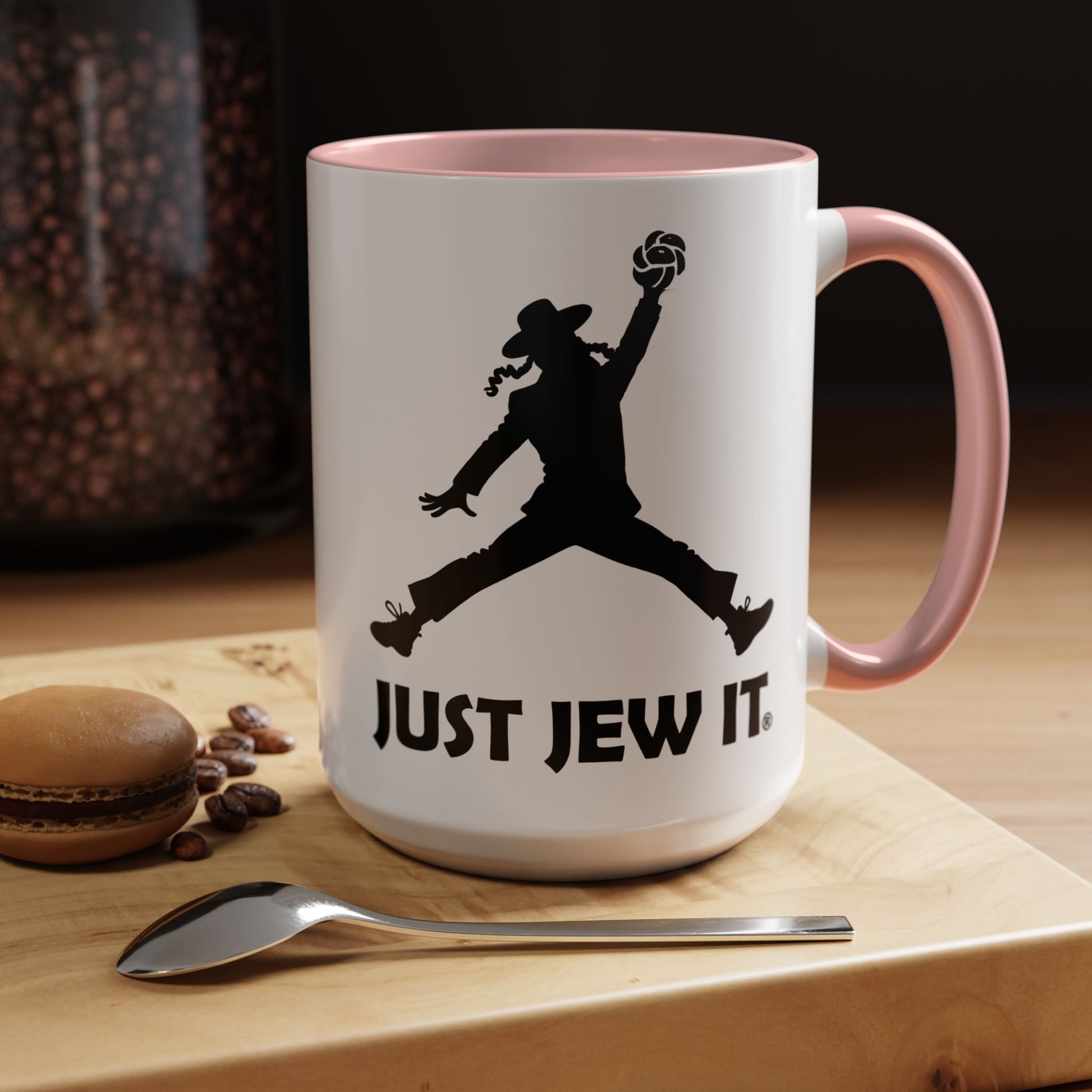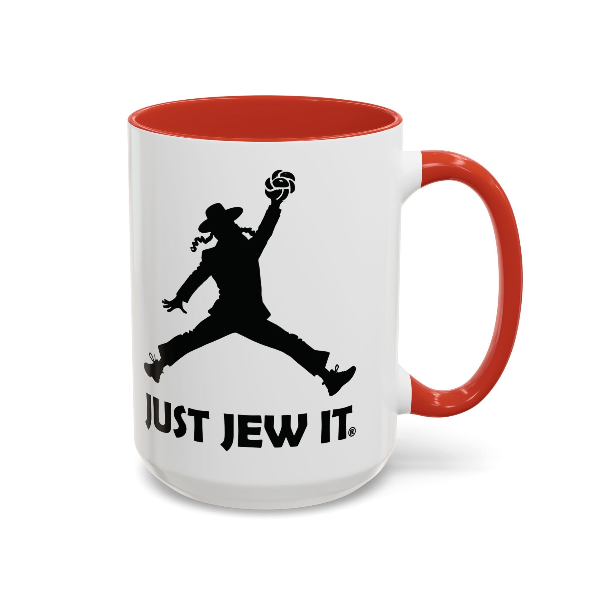 Just Jew It® Funny Rabbi Dunking Challa Bread Accent Mug, Jewish Humor Coffee Cup, Just Jew It Gift, 11, 15oz, Tea Mug, Ceramic Mug, Kitchen