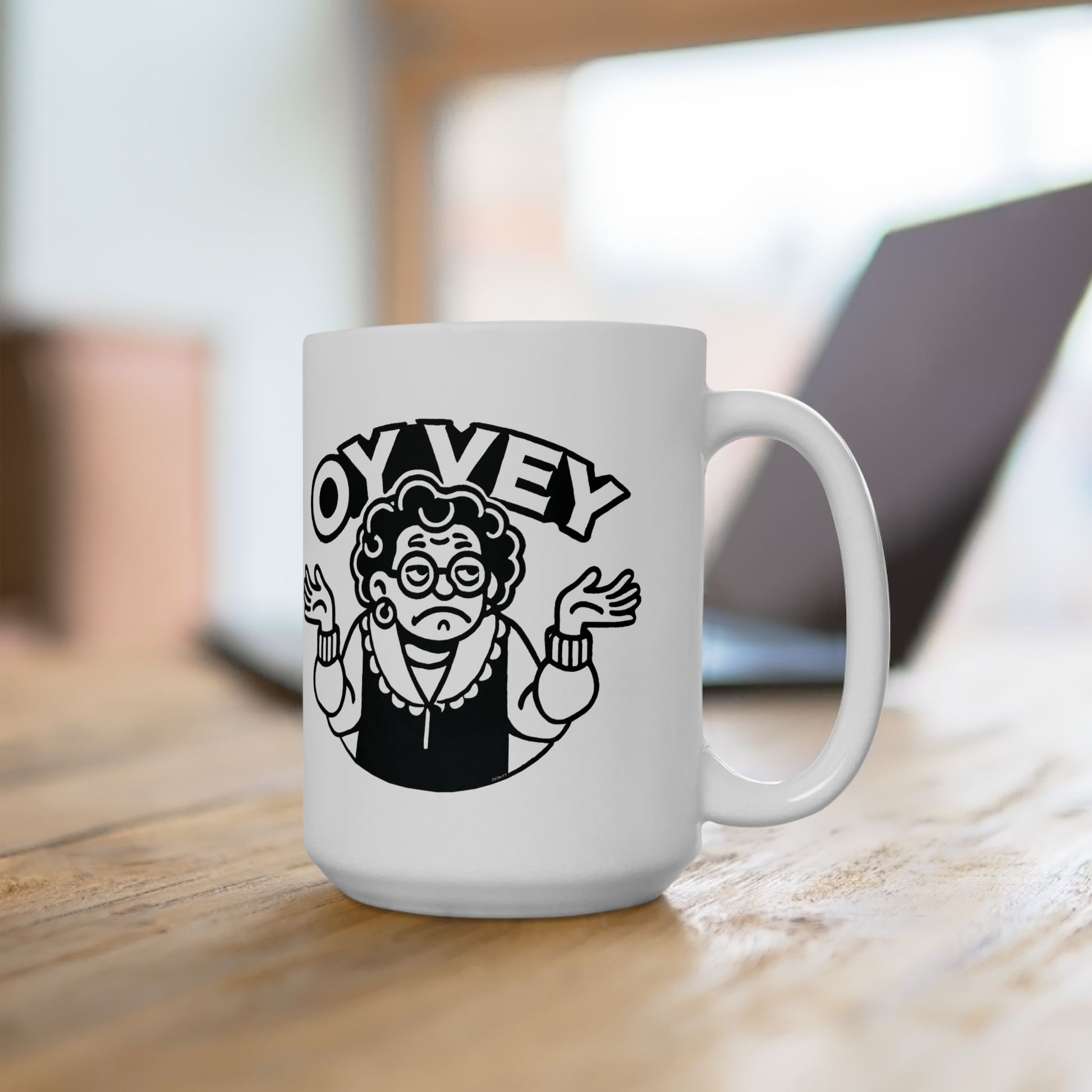 Oy Vey Granny Shrug - Stylish Gift for Coffee Lovers, Home Decor, Office Use, Funny Quotes, Engaging Conversation Starter